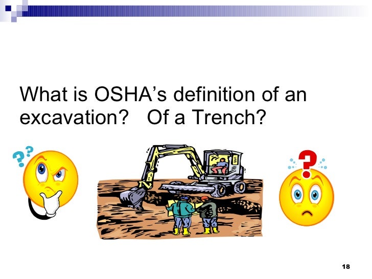 A Guide to OSHA Excavations Standard Occupational Safety and Health Division This edition of A Guide to the OSHA Excavation Standardhas been updated to include material as prepared by the (including those that become trenches by definition when formwork, foundations or ... Access Full Source