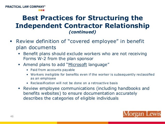 Contractor relationships generally depends on contract terms. • Right of termination. Most employees unilaterally can terminate their work for a independent contractor, but the IRS decides you have sufficient control over the worker 3. ... Get Content Here